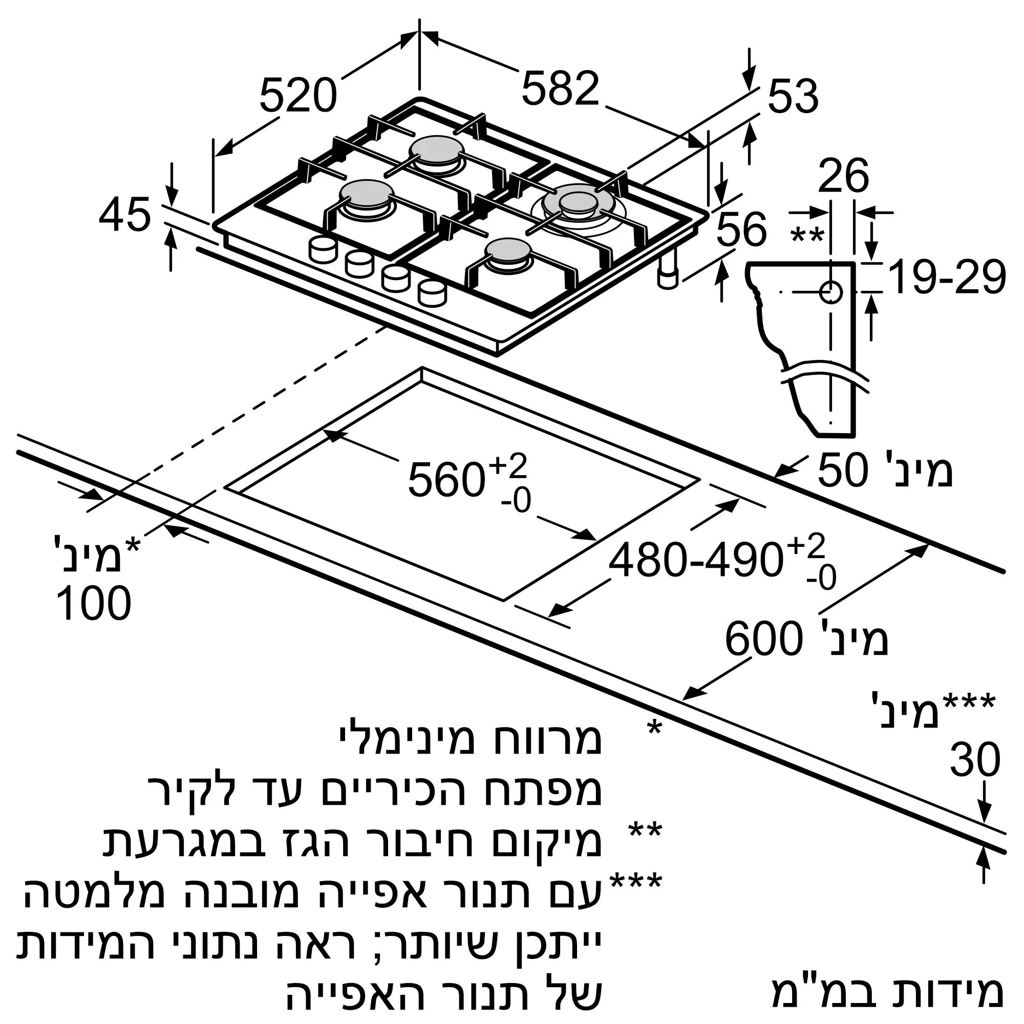 תנור משולב כיריים גז