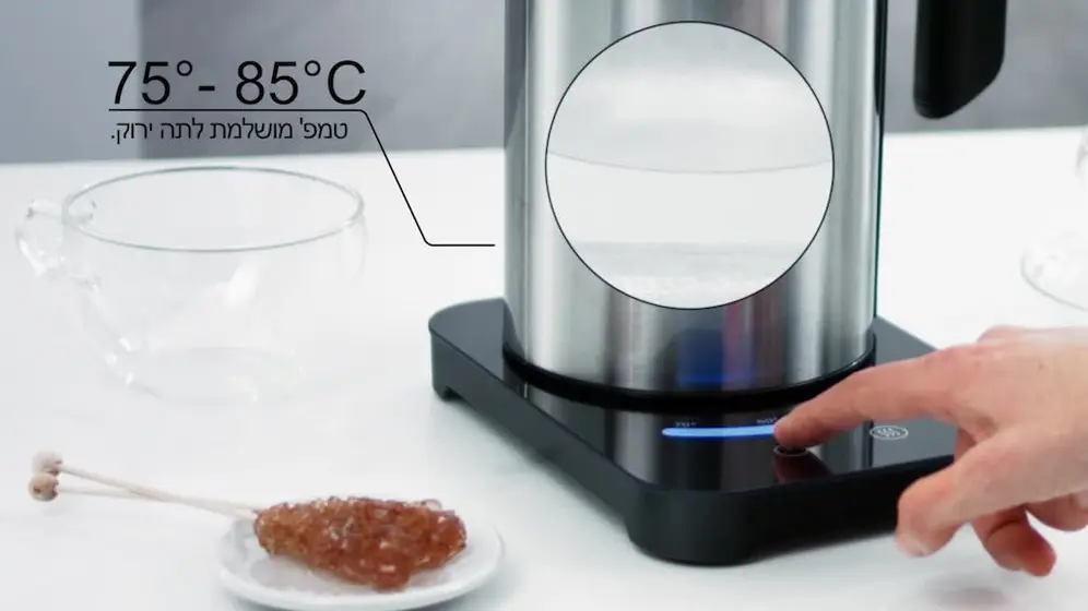 Temperature Control 7: לכוס תה מושלמת צריך טמפרטורה מתאימה, ניתן לבחור בין 7 טמפרטורות שונות בעזרת בורר אלקטרוני לקביעת הטמפרטורת הפעלה מ- 70°C ועד רתיחה